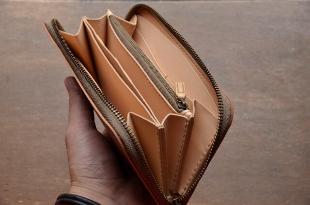 ◆ラウンドジップ長財布 キャメル/プレーン(染め無し)